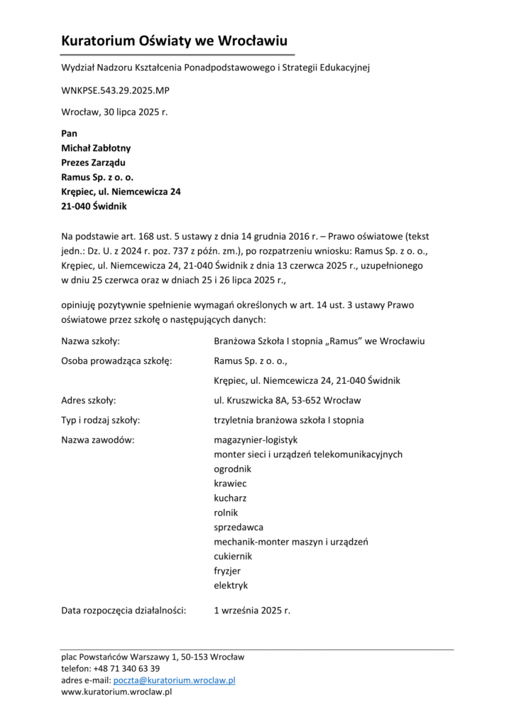 Branżowa Szkoła I Stopnia „Ramus” we Wrocławiu: